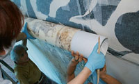 作品保存の為、経年後の再修復を考慮して、作品を傷めることなく剥